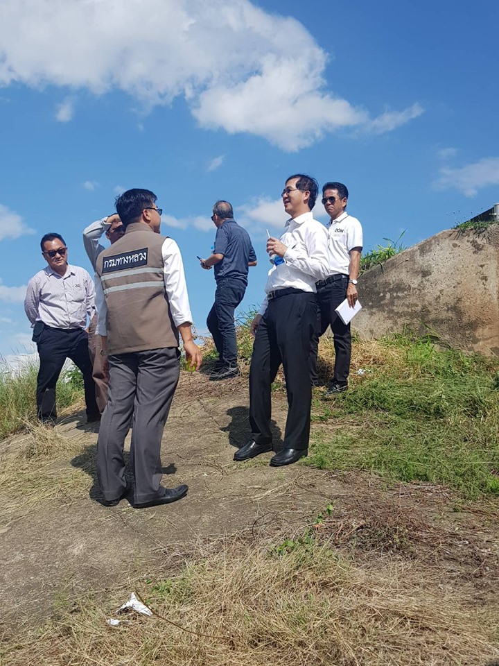 นายพินิจ แก้วมาคูณ ผส.ทล.7,นายเกรียงศักดิ์ ตันปิยะกุล รส.ทล.7.2, นายสิโรตม์ แดงภูมี ผอ.ขท. ขอนแก่นที่ 1 ให้การต้อนรับนายประมณฑ์ สถาพรณานนท์ วญบ.และคณะ พร้อมร่วมลงตรวจสอบพื้นที่ โครงการสำรวจ และออกแบบทางแยกต่างระดับจุดตัดทางหลวงหมายเลข 2