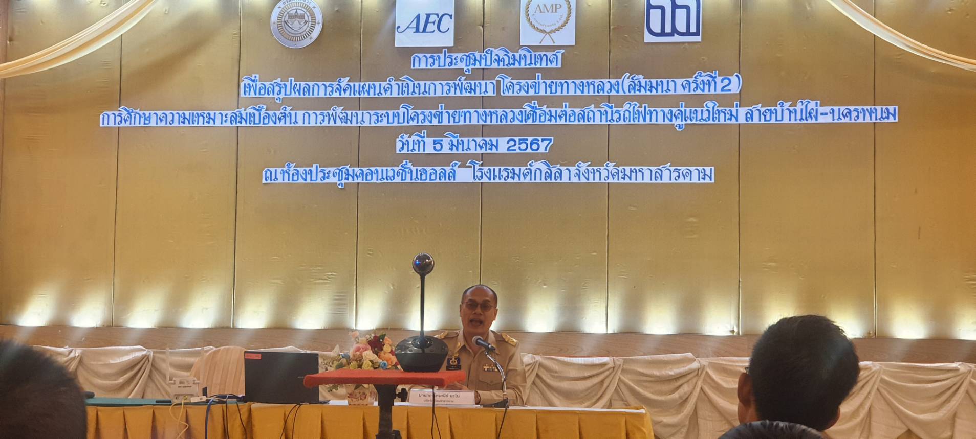 ร่วมการประชุมรับฟังความคิดเห็นต่อการประชุมปัจฉิมนิเทศเพื่อสรุปผลการจัดแผนดำเนินการพัฒนาโครงข่ายทางหลวง (สัมมนา ครั้งที่ 2) การศึกษาความเหมาะสมเบื้องต้น การพัฒนาระบบโครงข่ายทางหลวงเชื่อมต่อสถานีรถไฟทางคู่แนวใหม่ สายบ้านไผ่ - นครพนม