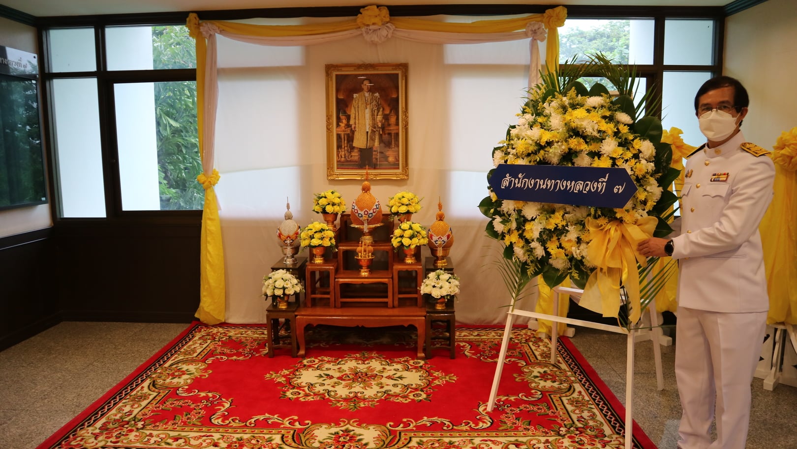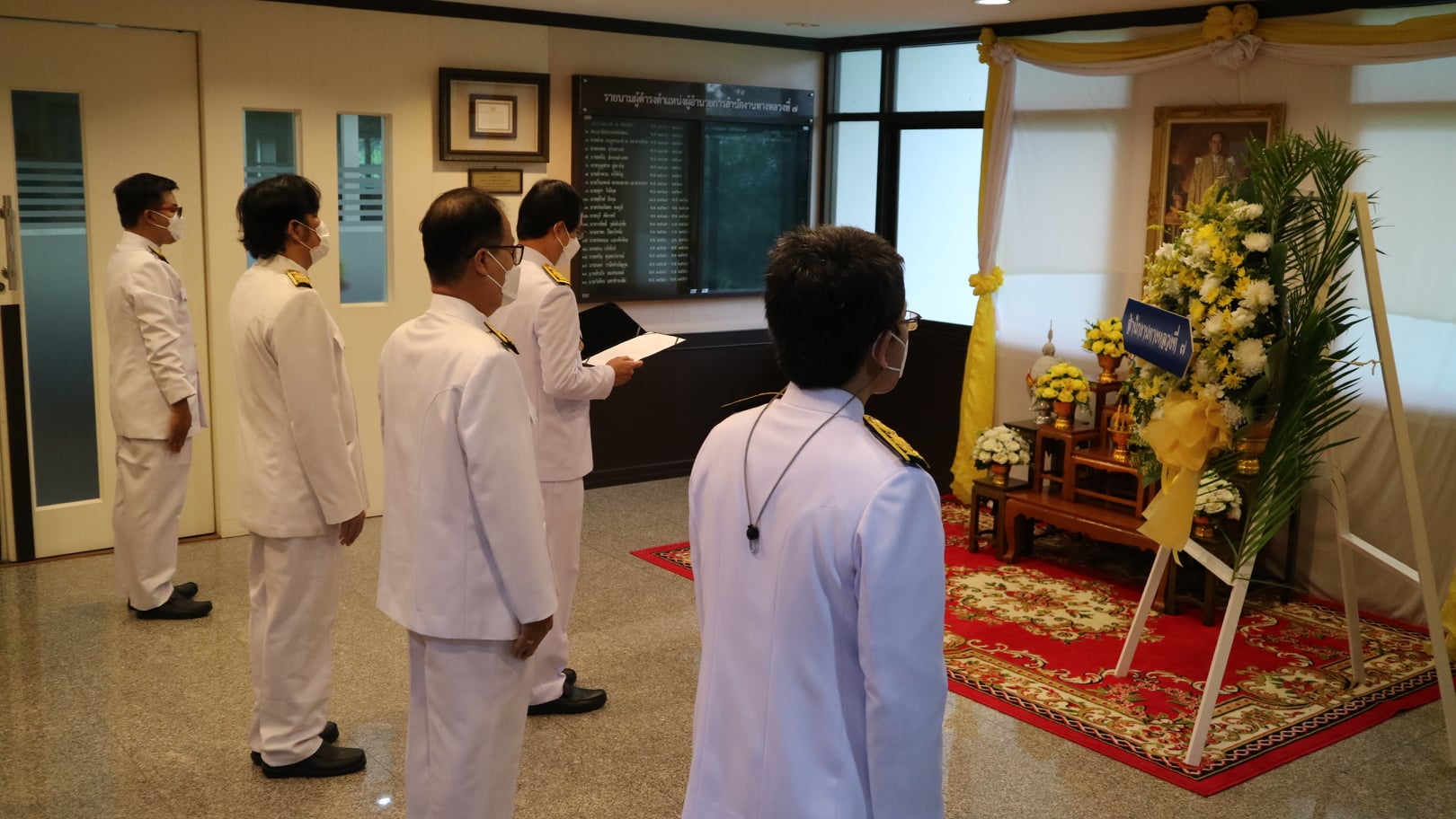 นายพินิจ แก้วมาคูณ ผู้อำนวยการสำนักงานทางหลวงที่ 7 (ขอนแก่น) พร้อมด้วยข้าราชการ พนักงานราชการ เจ้าหน้าที่ในสังกัดสำนักงานทางหลวงที่ 7 (ขอนแก่น) ร่วมพิธีวางพวงมาลา เบื้องหน้าพระบรมฉายาลักษณ์ พระบาทสมเด็จพระบรมชนกาธิเบศร มหาภูมิพลอดุลยเดช บรมนาถบพิตร เนื่องในวันคล้ายวันสวรรคต 13 ตุลาคม พุทธศักราช 2564