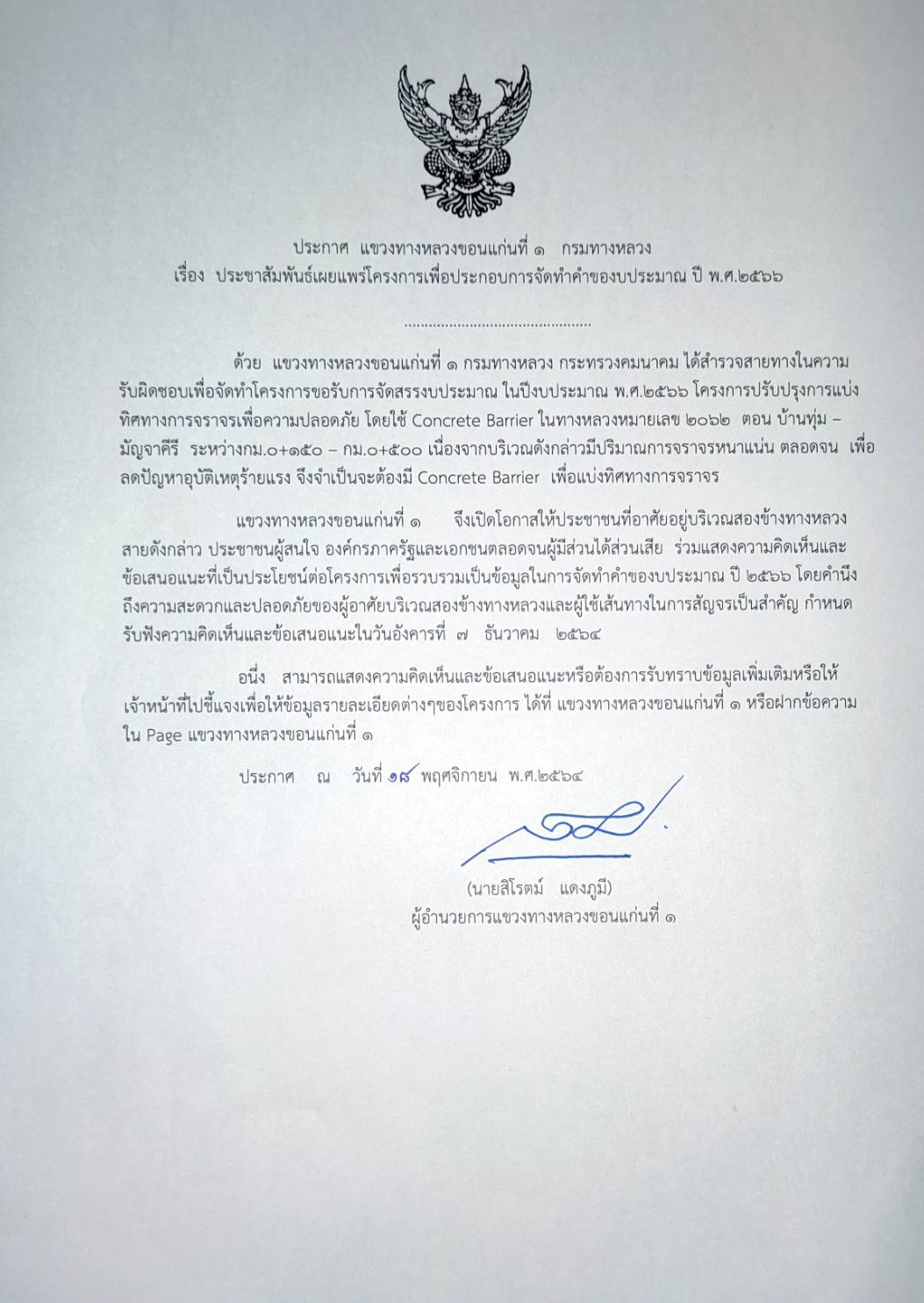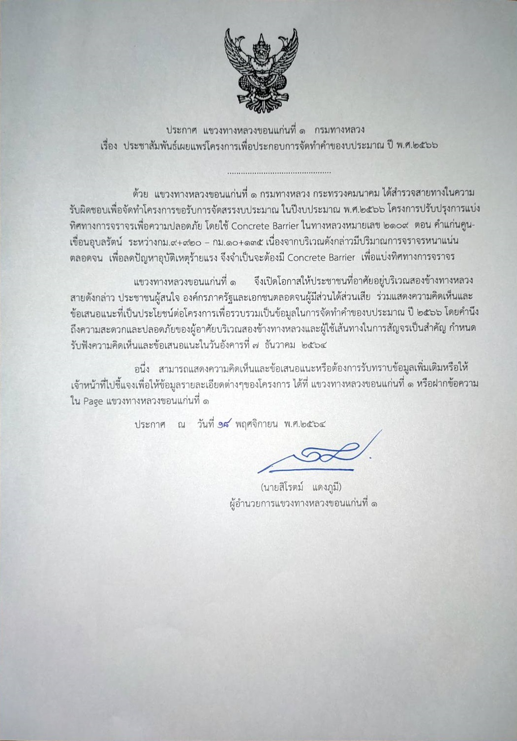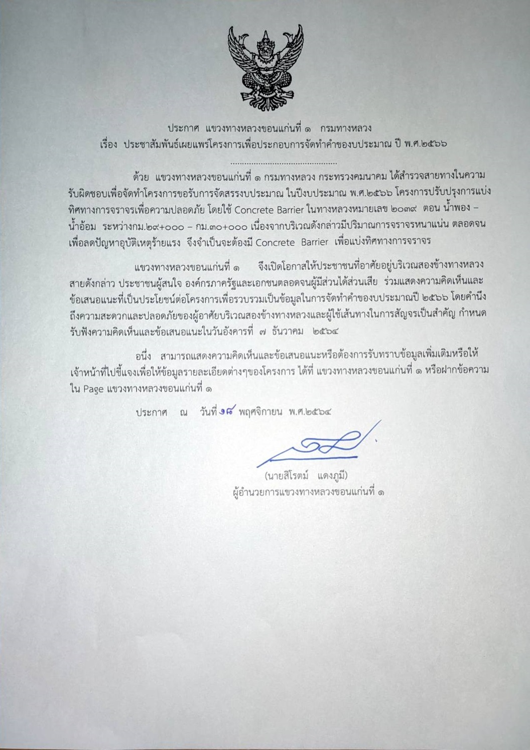 วิสัยทัศน์ : มุ่งพัฒนาและดูแลบริหารจัดการโครงข่ายทางหลวงที่สะดวก เชื่อมโยง เข้าถึง ปลอดภัยตามมาตรฐานลำดับชั้นทางหลวงที่เป็นมิตรต่อสิ่งแวดล้อม