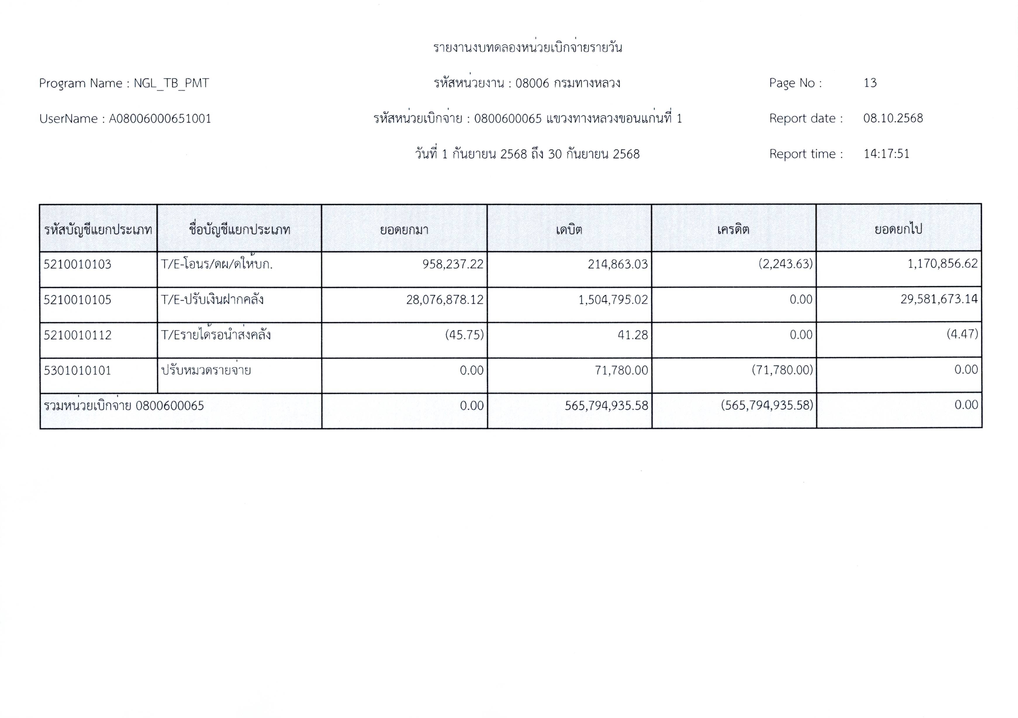 งบทดลองประจำเดือนกันยายน 2568