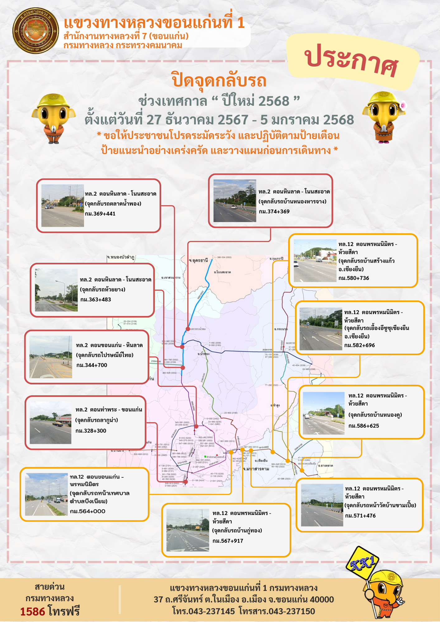 ประชาสัมพันธ์ปิดจุดกลับรถช่วง "เทศกาลปีใหม่ 2568" ตั้งแต่วันที่ 27 ธันวาคม 2567 - 5 มกราคม 2568