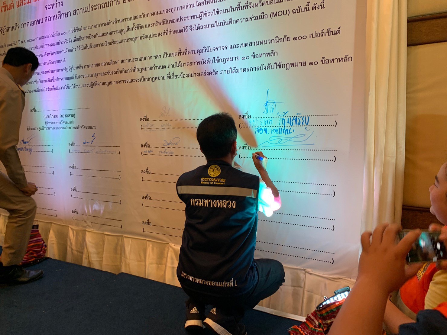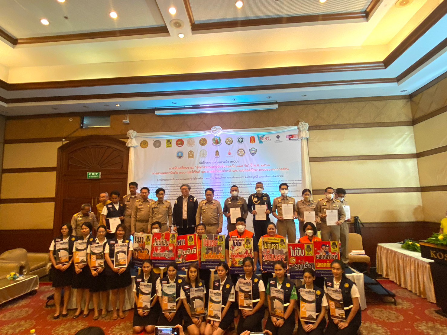 วันจันทร์ที่ 3 เมษายน 2566 เวลา 13:30 น. นายสิโรตม์ แดงภูมี ผู้อำนวยการแขวงทางหลวงขอนแก่นที่ 1 พร้อมด้วยคณะกรรมการ ศูนย์ปฏิบัติการป้องกันและลดอุบัติเหตุทางถนนจังหวัดขอนแก่นหัวหน้าส่วนราชการ หน่วยงาน องค์กรภาคีเครือข่ายต่างๆที่ดูแลความปลอดภัยทางถนน ได้ร่วมลงนามบันทึกความร่วมมือ (MOU) การขับเคลื่อนวาระ "จังหวัดขอนแก่นขับขี่ปลอดภัย 365 วัน" ปี พ.ศ. 2566 การสวมหมวกนิรภัย 100 เปอร์เซ็นต์ และมาตรการองค์กรด้านความปลอดภัยทางถนนของทุกภาคส่วน พร้อมเปิดศูนย์ปฏิบัติการป้องกันและลดอุบัติเหตุทางถนนช่วงเทศกาลสงกรานต์ปี 2566 โดยมีนายไกรสร กองฉลาด ผู้ว่าราชการจังหวัดขอนแก่น เป็นประธานในการประชุม ณ ห้องมงกุฎเพชร 1 โรงแรมโฆษะ อำเภอเมืองขอนแก่น จังหวัดขอนแก่น