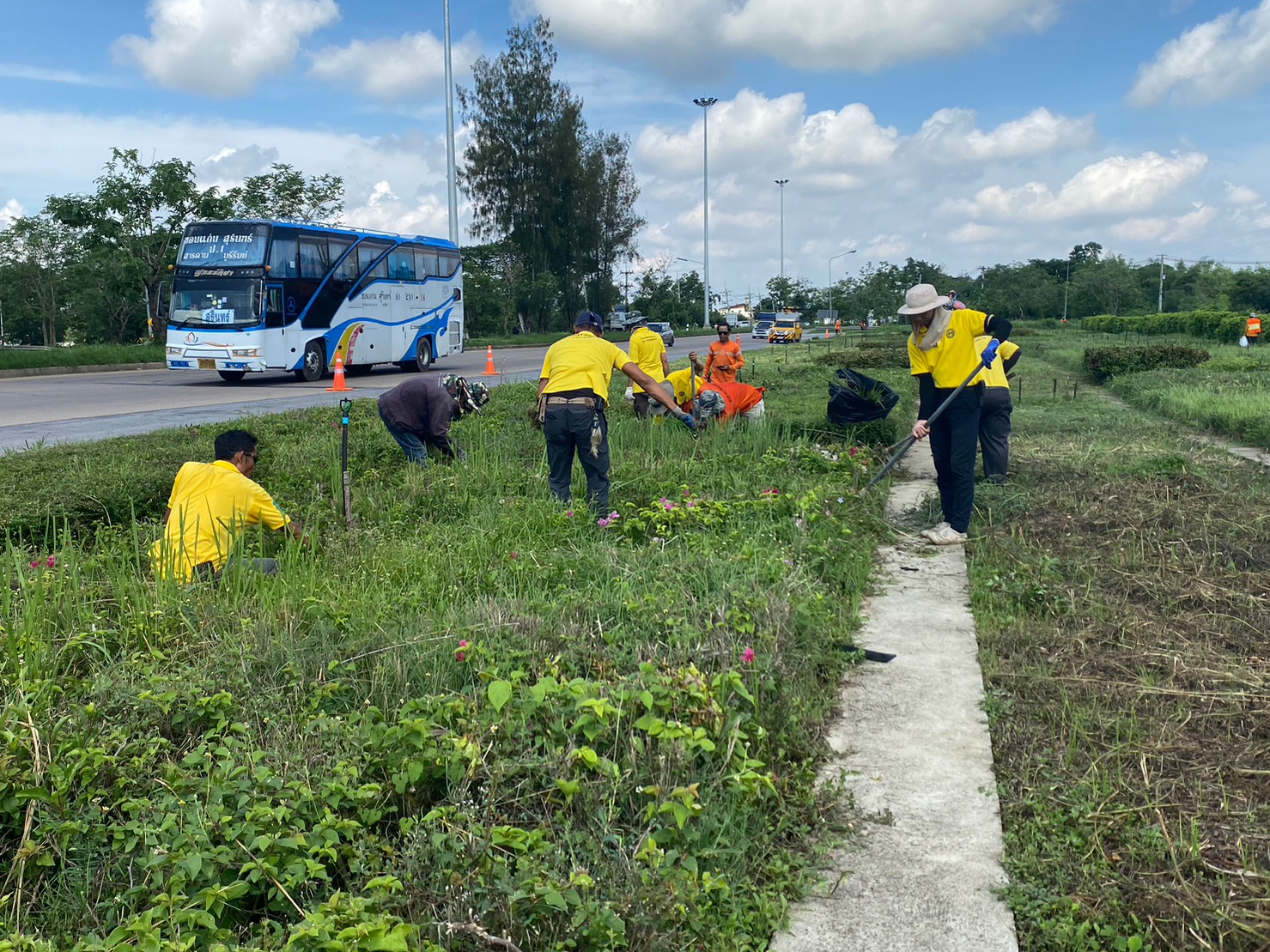นายสิโรตม์ แดงภูมี ผู้อำนวยการแขวงทางหลวงขอนแก่นที่ 1 พร้อมด้วยข้าราชการ, พนักงานราชการ และเจ้าหน้าที่แขวงฯ ดำเนินโครงการพัฒนาเพื่อสังคมในโอกาสครบรอบ 111 ปี กระทรวงคมนาคม โดยร่วมกันทำความสะอาด และปรับปรุงภูมิทัศน์บริเวณโดยรอบ "สวนไดโนเสาร์บึงเนียม" ทางหลวงหมายเลข 230 ตอน ถนนวงแหวนรอบเมืองขอนแก่นด้านทิศตะวันออก ที่ กม.34+351