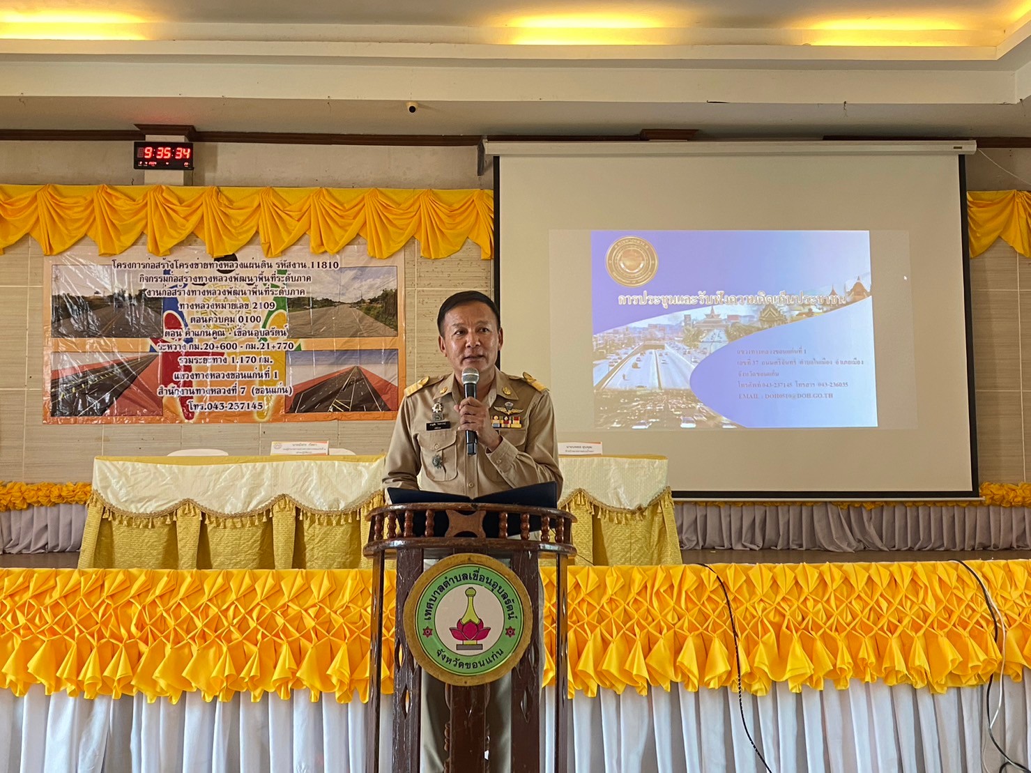แขวงทางหลวงขอนแก่นที่ 1 ได้จัดการประชุมโครงการก่อสร้างทางหลวงแผ่นดินกิจกรรมก่อสร้างทางหลวงพัฒนาพื้นที่ระดับภาค ทางหลวงหมายเลข 2109 ตอนควบคุม 0100 ตอน คำแก่นคูณ - เขื่อนอุบลรัตน์ ระหว่าง กม.20+600 - กม.21+770 โดยมีนายมังกร กัลยา รองผู้อำนวยการแขวงทางหลวงขอนแก่นที่ 1 ฝ่ายปฏิบัติการ,นายอนุวัฒน์ เรืองเดชาวิวัฒน์ รองผู้อำนวยการแขวงทางหลวงขอนแก่นที่ 1 ฝ่ายวิศวกรรม และนายนพดล ลุนพุฒ หัวหน้าหมวดทางหลวงน้ำพอง ร่วมให้ข้อมูลและตอบข้อซักถามให้แก่ประชาชนที่เข้าร่วมโครงการดังกล่าว โดยมีนายชาญชัย วิทยาภรณ์ ปลัดอำเภออาวุโสอำเภออุบลรัตน์ เป็นประธานเปิด การประชุมโครงการฯ ณ ศูนย์ OTOP เทศบาลตำบลเขื่อนอุบลรัตน์ อ.อุบลรัตน์ จ.ขอนแก่น