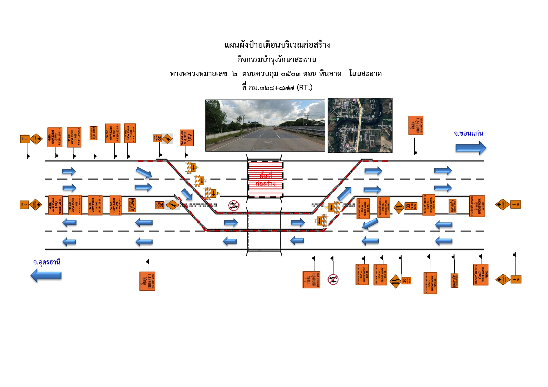 เบี่ยงการจราจรเพื่อทำการก่อสร้าง กิจกรรมบำรุงรักษาสะพาน งานบำรุงรักษาสะพาน ทางหลวงหมายเลข 2 ตอนควบคุม 0503 ตอน หินลาด - โนนสะอาด ที่ กม.368+877 (RT.)