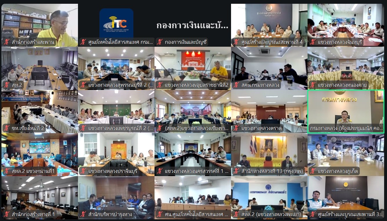 นายปิยพงษ์ จิวัฒนกุลไพศาล อธิบดีกรมทางหลวง มอบนโยบายการบริหารงานให้กับข้าราชการและเจ้าหน้าที่กรมทางหลวงผ่านระบบ Zoom Cloud Meeting ห้องประชุมมนัส คอวนิช กรมทางหลวงมายังส่วนภูมิภาค โดยมีนายศุภลักษณ์ ศิริสุทธิ์ รองผู้อำนวยการฝ่ายปฏิบัติการ, นางสาวพนารัตน์ เจริญราช รองผู้อำนวยการฝ่ายบริหาร, นายสมศักดิ์ เนาวราช ผู้อำนวยการหมวดทางหลวงอาวุโสศิลา พร้อมด้วยหัวหน้างานในสังกัดเข้าร่วมการประชุมในครั้งนี้ ณ ห้องประชุมแขวงทางหลวงขอนแก่นที่ 1