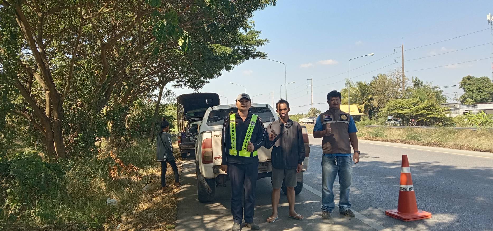 แขวงทางหลวงขอนแก่นที่ 1 โดยหน่วยเคลื่อนที่เร็ว งานปรับซ่อม ให้ความช่วยเหลือประชาชนผู้ใช้เส้นทางบนทางหลวง เวลาประมาณ 11.45 น. ให้ความช่วยเหลือรถยนต์โตโยต้าวีโก้ ทะเบียน ฆท - 3192 กทม. ตรวสอบพบว่า ยางหลังข้างซ้ายรั่ว เวลาประมาณ 14.24 น. ให้ความช่วยเหลือรถยนต์อีซูซุดีแมกซ์ ทะเบียน ตร - 5450 กทม. ตรวสอบพบว่า ยางหลังข้างขวารั่ว เจ้าหน้าที่แขวงฯ จึงได้ดำเนินการติดตั้งอุปกรณ์อำนวยความปลอดภัยและช่วยปะยาง รถทั้ง 2 คัน เพื่อให้ประชาชนสามารถเดินทางต่อไปได้