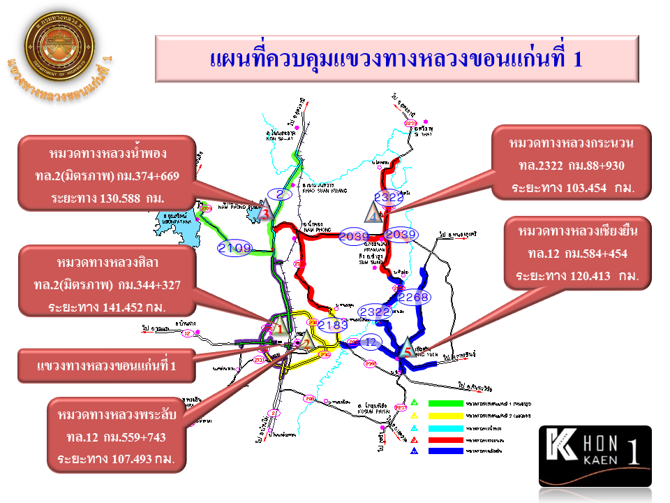 แขวงทางหลวงขอนแก่นที่ 1 กรมทางหลวง 37 ม.4 ถ.ศรีจันทร์ ต.ในเมือง อ.เมือง จ.ขอนแก่น 40000
