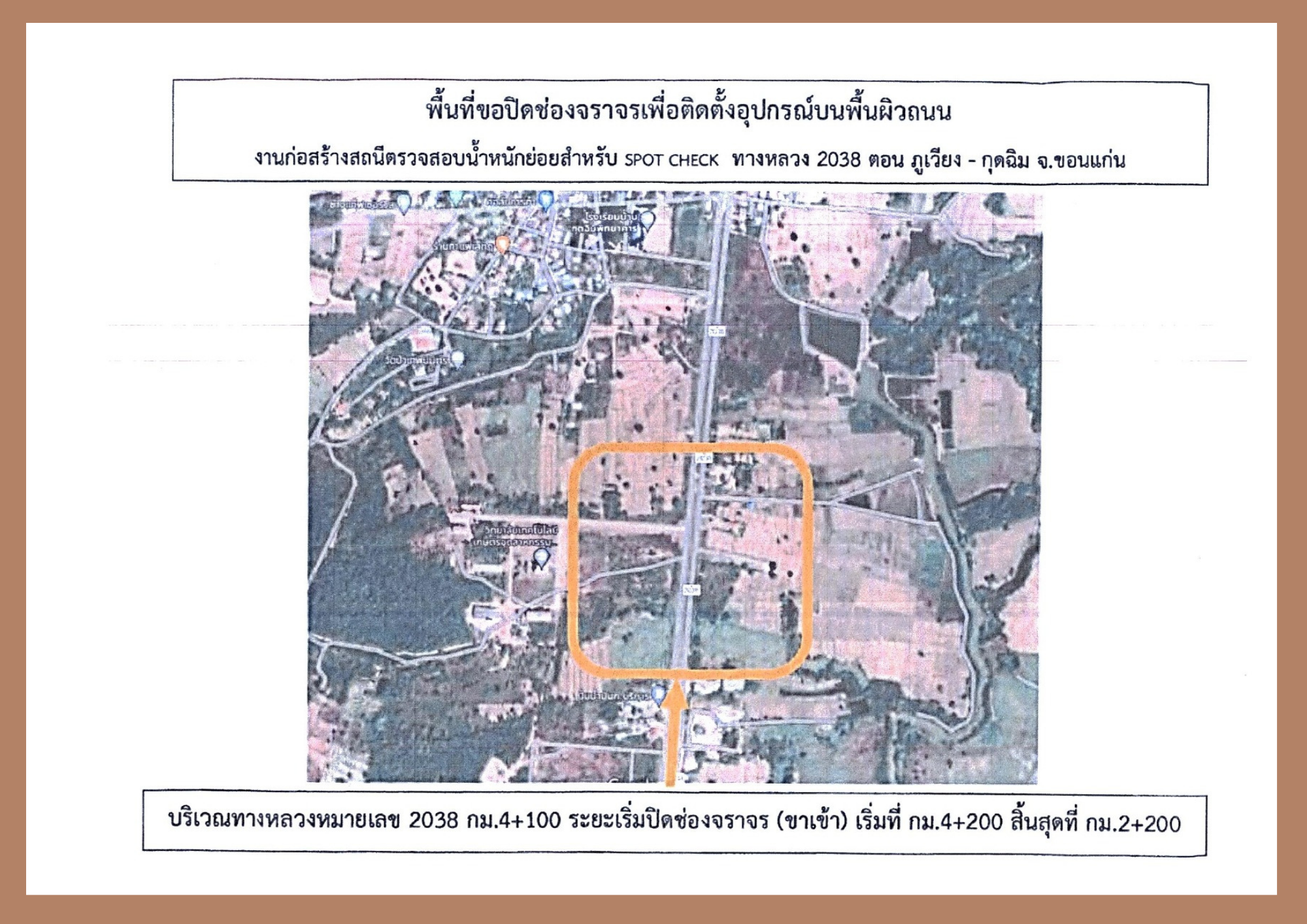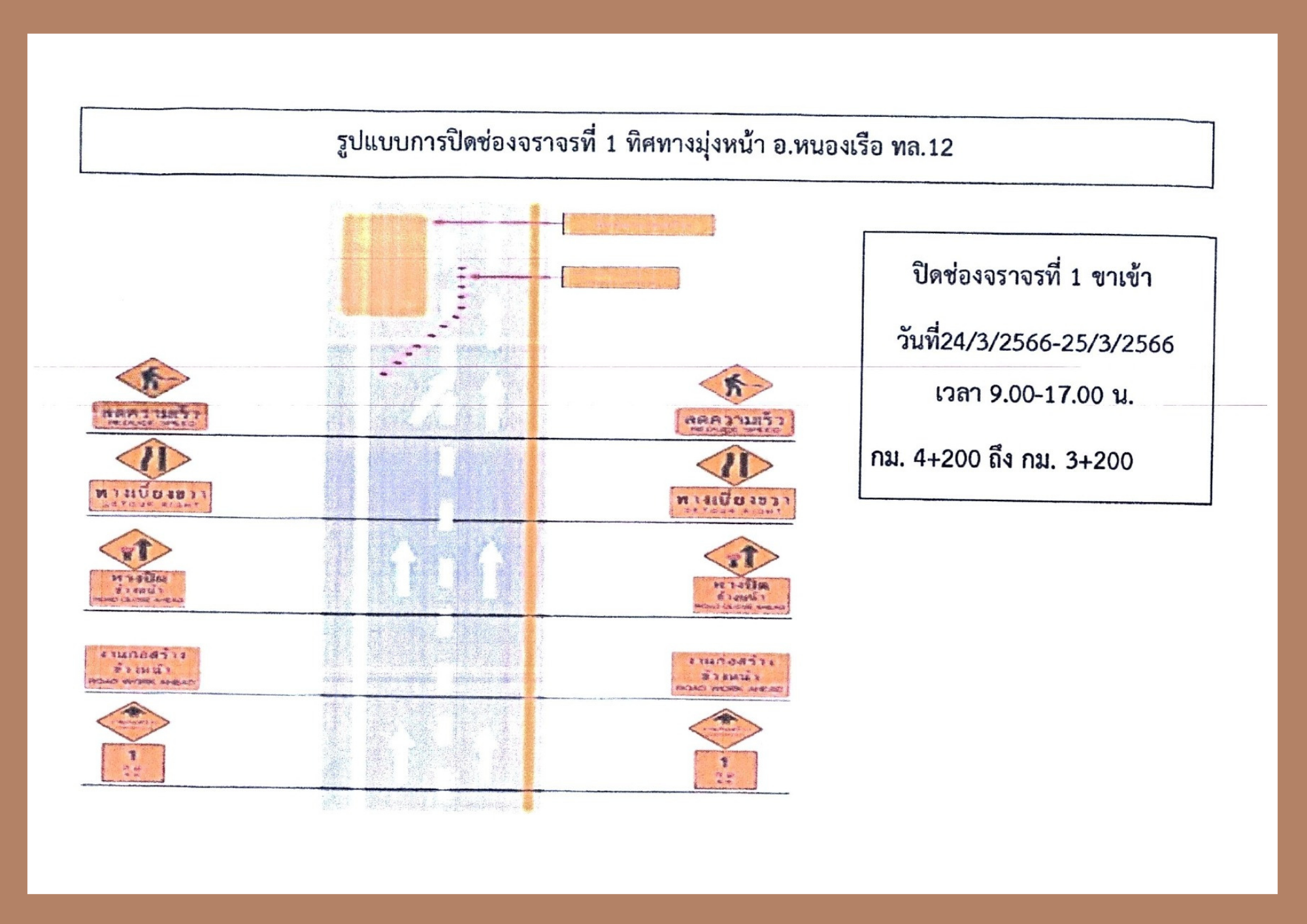 จึงขอเบี่ยงการจราจรช่องที่ 1 ทางหลวงหมายเลข 2038 (ขาเข้า) ช่วง กม.4+200 ถึง 3+200 วันที่ 24 - 25 มีนาคม 2566