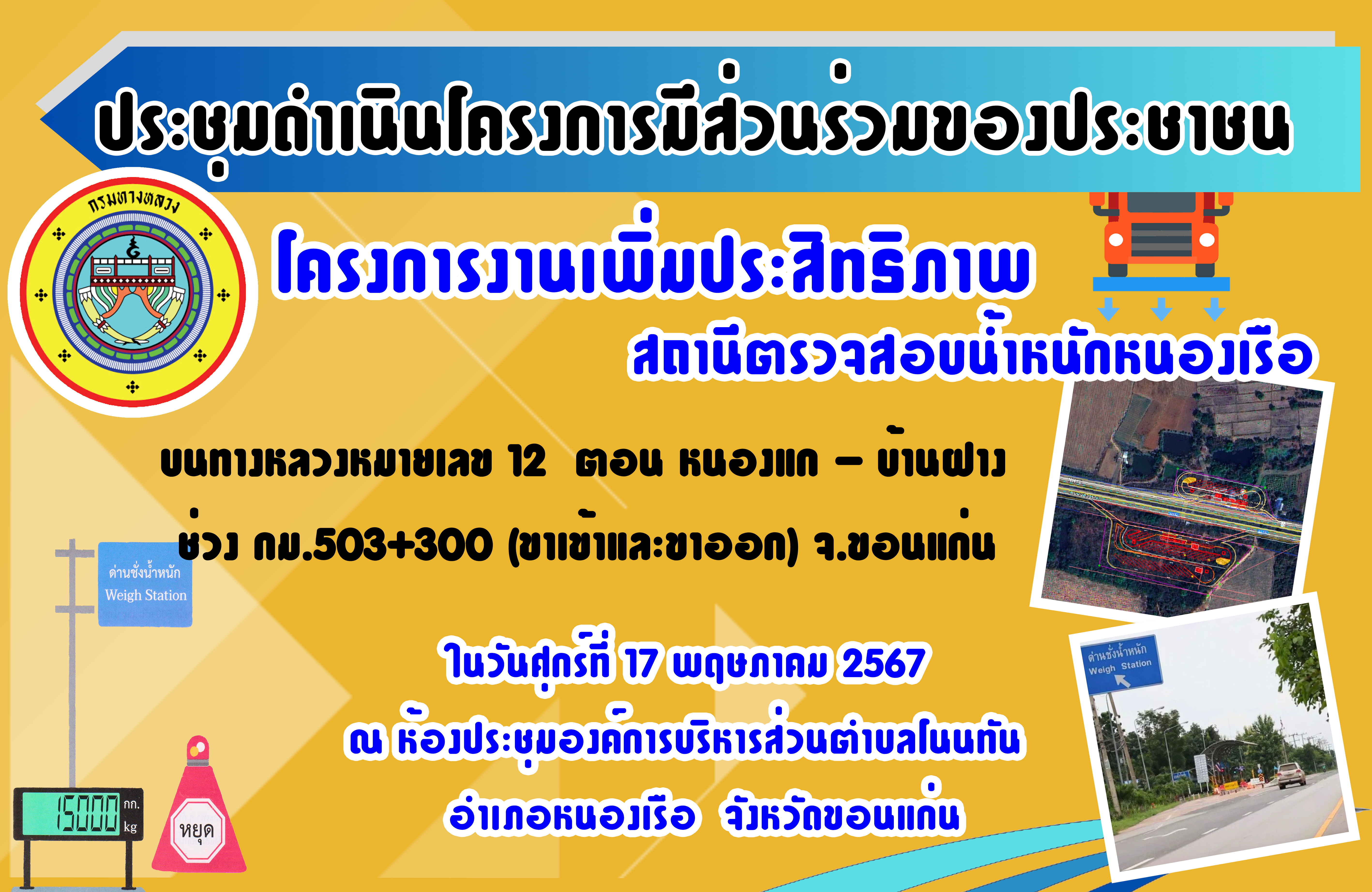 โครงการงานเพิ่มประสิทธิภาพสถานีตรวจสอบน้ำหนักหนองเรือ (ขาเข้าและขาออก) จ.ขอนแก่น บนทางหลวงหมายเลข 12 ตอน หนองแก - บ้านฝางช่วง กม.503+300 จ.ขอนแก่น |