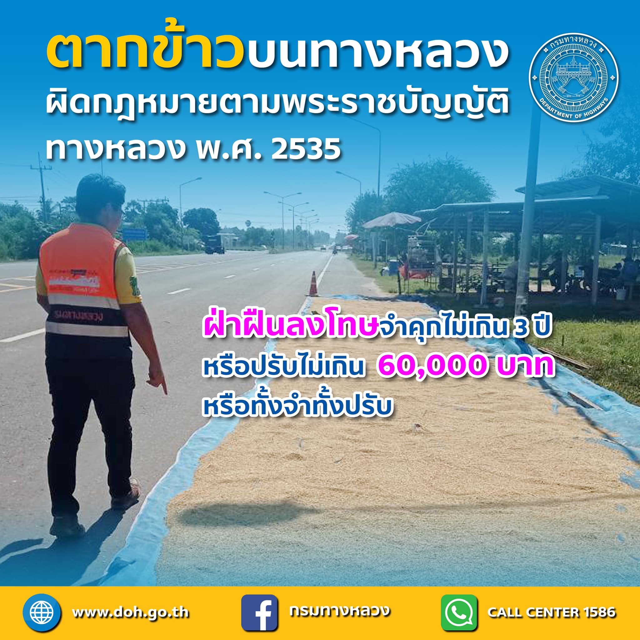 #สายด่วนกรมทางหลวง1586#ใส่ใจผู้ใช้ทาง#ตากข้าวบนทางหลวง#ผิดพระราชบัญญัติทางหลวง
