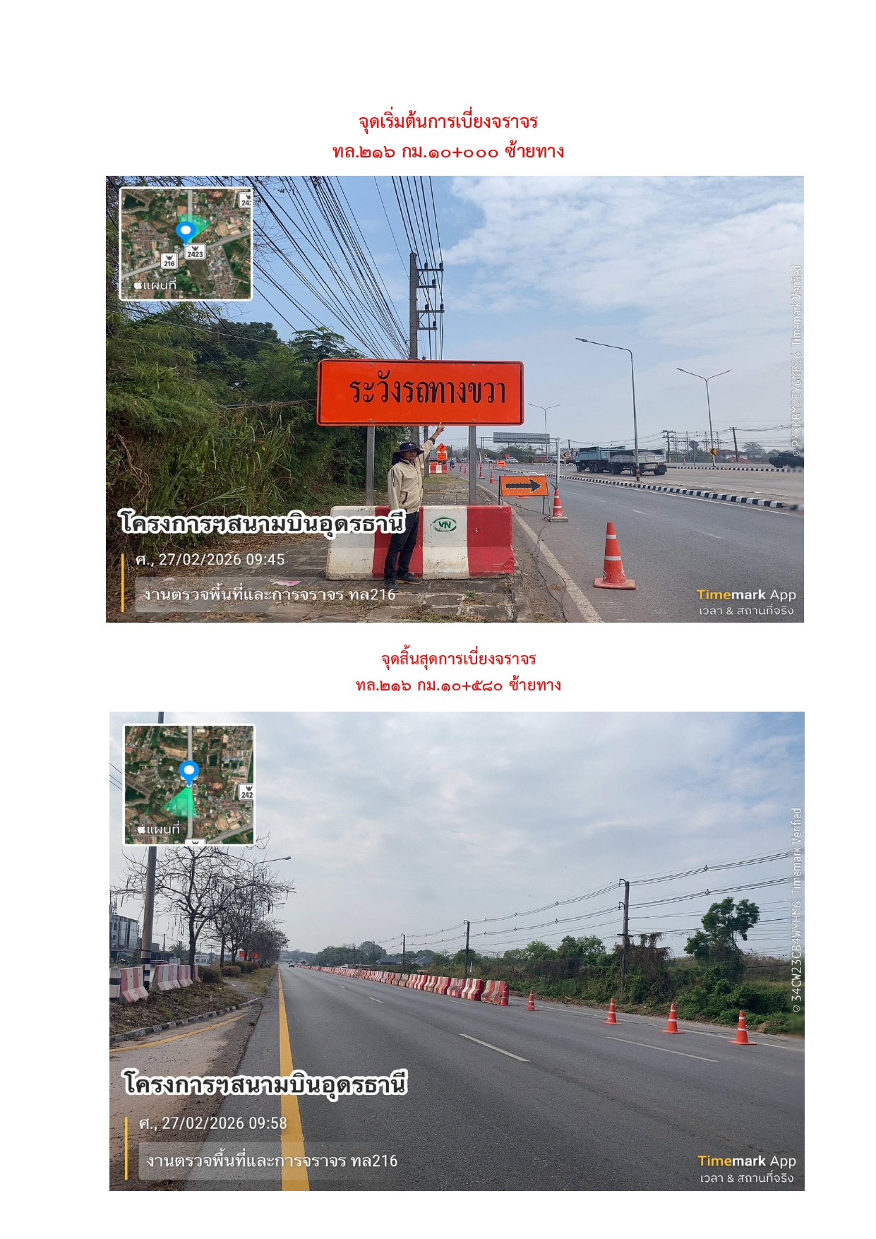 ลงพื้นที่ตรวจสอบและหารือแนวทางการแก้ไขปัญหาเรื่องร้องเรียนจากประชาชน บนทางหลวงหมายเลข 216 ตอน ถนนวงแหวนรอบเมืองอุดรธานีด้านทิศตะวันออก ที่ กม.19+872 ด้านซ้ายทาง จุดกลับรถบริเวณหน้าชุมชนการเคหะประภาวิลล์