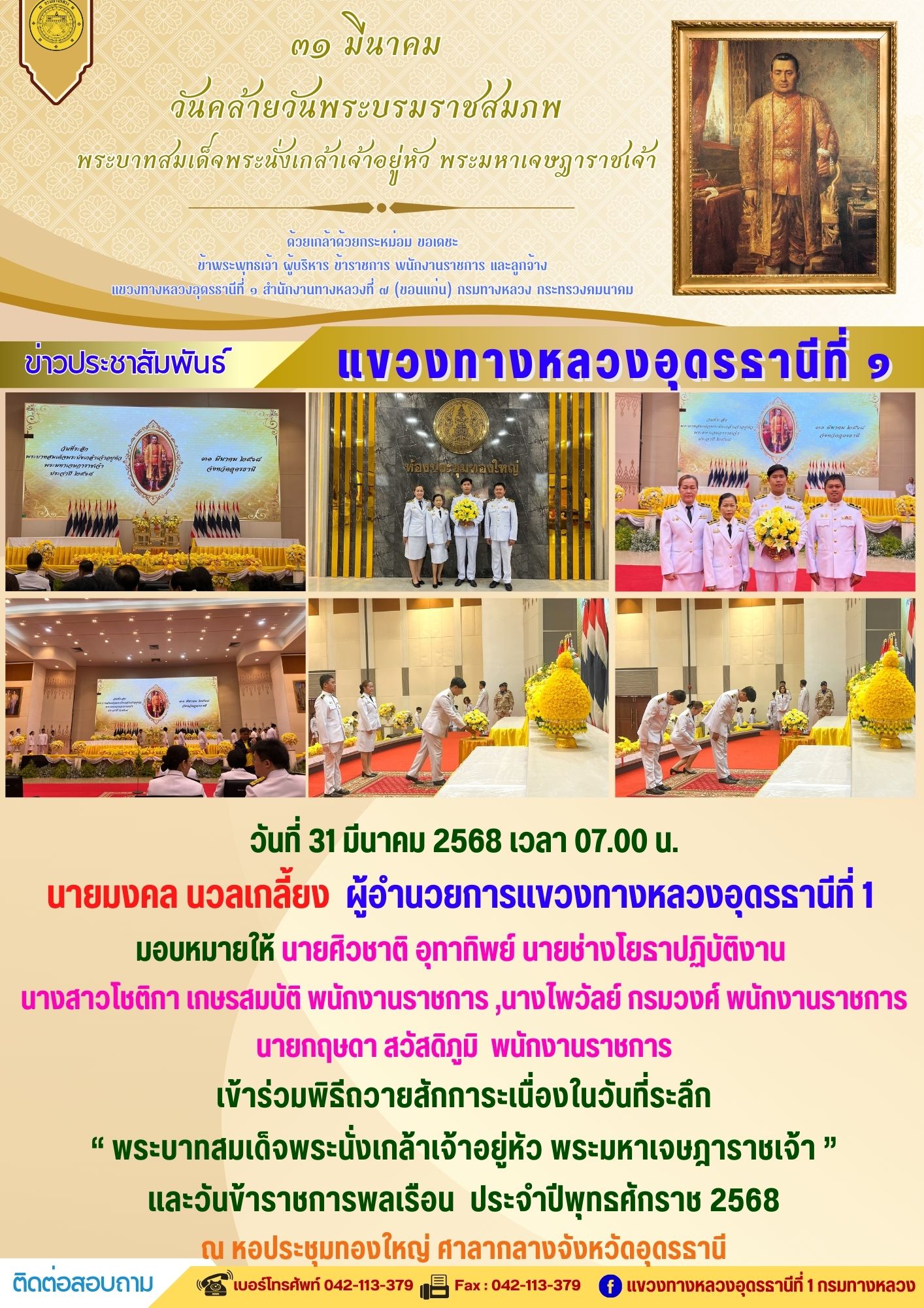 เข้าร่วมพิธีถวายสักการะเนื่องในวันที่ระลึก “ พระบาทสมเด็จพระนั่งเกล้าเจ้าอยู่หัว พระมหาเจษฎาราชเจ้า ” และวันข้าราชการพลเรือน ประจำปีพุทธศักราช 2568