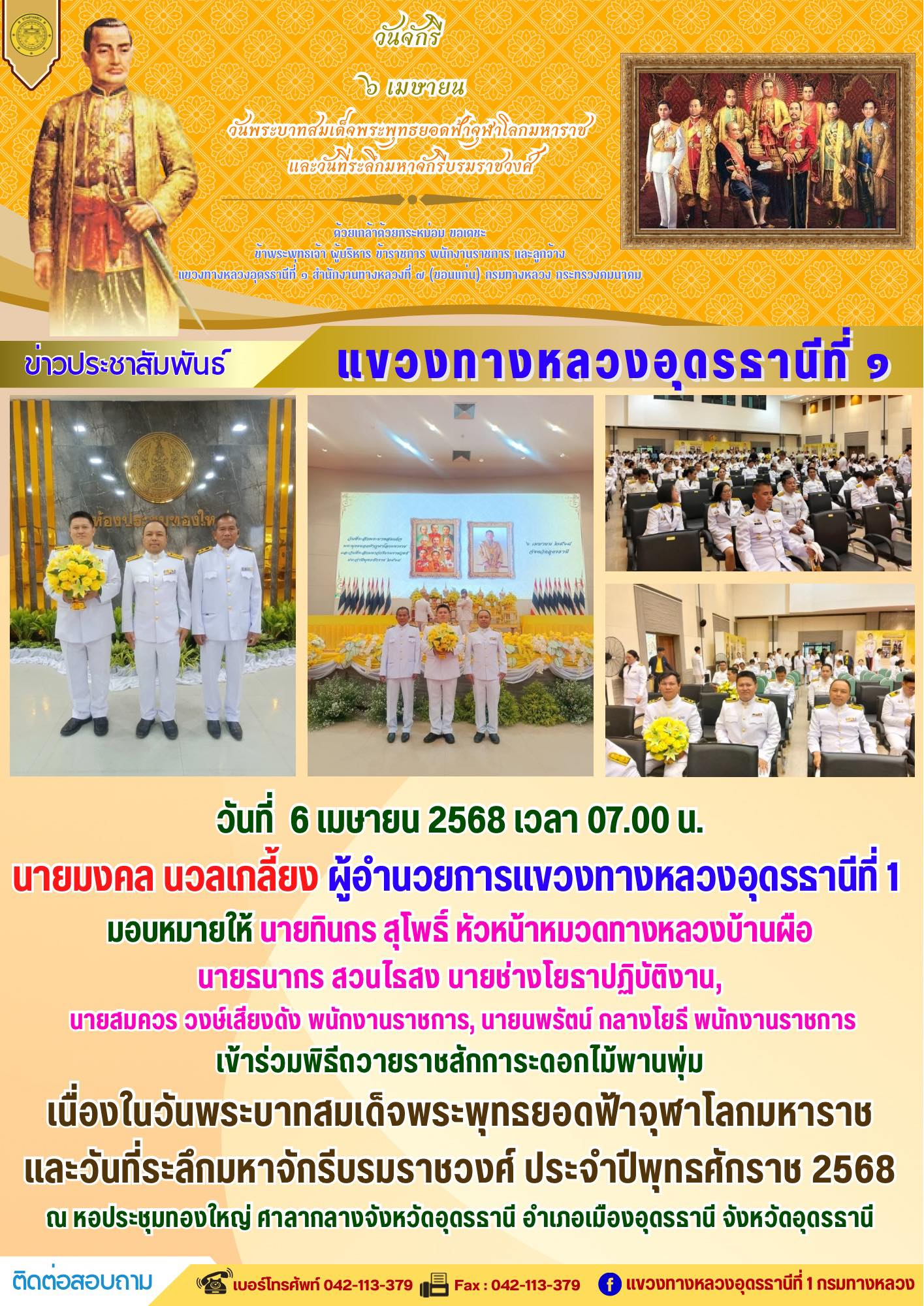 เข้าร่วมพิธีถวายราชสักการะดอกไม้พานพุ่ม เนื่องในวันพระบาทสมเด็จพระพุทธยอดฟ้าจุฬาโลกมหาราช และวันที่ระลึกมหาจักรีบรมราชวงศ์ ประจำปีพุทธศักราช 2568