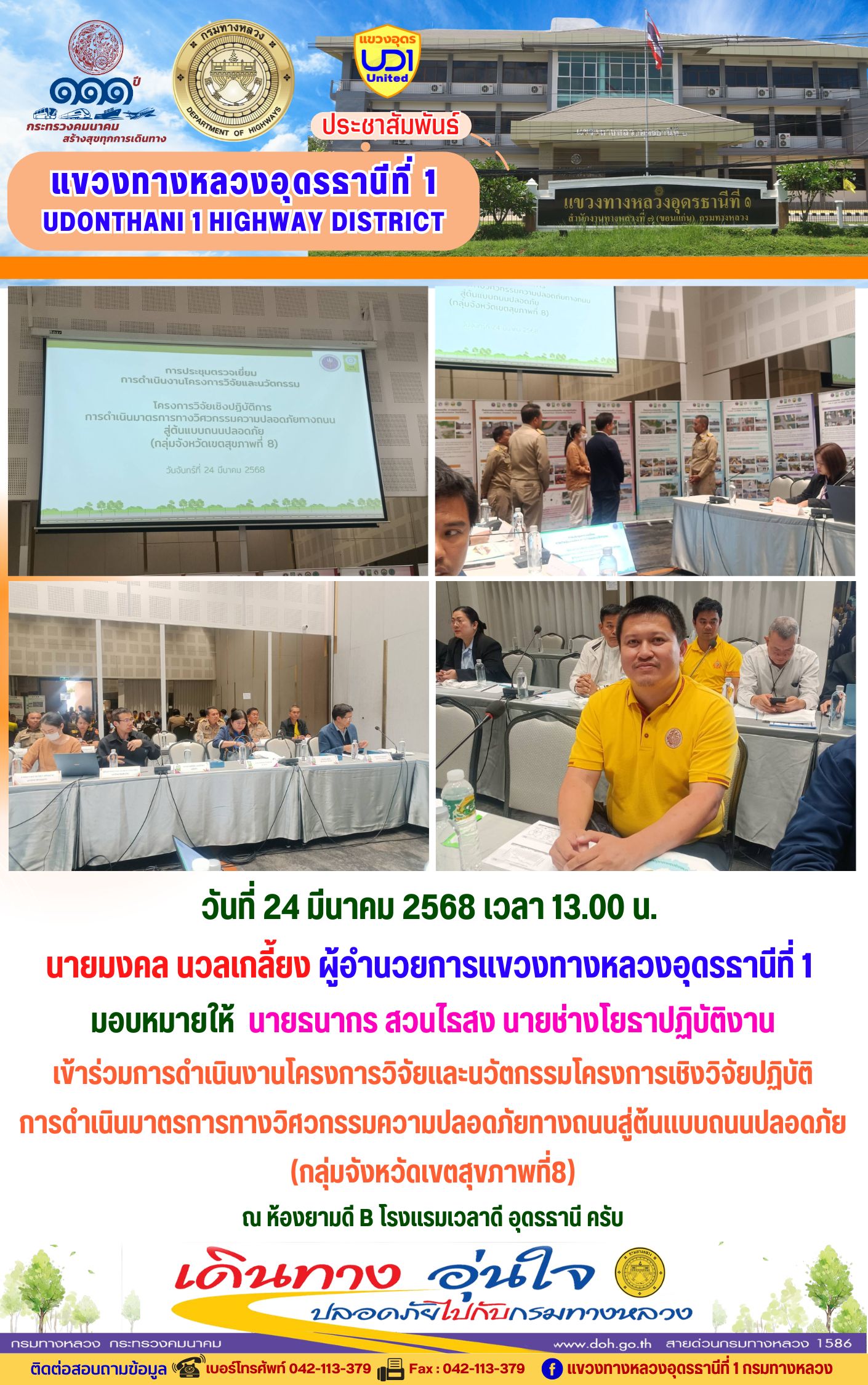 เข้าร่วมการดำเนินงานโครงการวิจัยและนวัตกรรมโครงการเชิงวิจัยปฏิบัติ การดำเนินมาตรการทางวิศวกรรมความปลอดภัยทางถนนสู่ต้นแบบถนนปลอดภัย (กลุ่มจังหวัดเขตสุขภาพที่8)