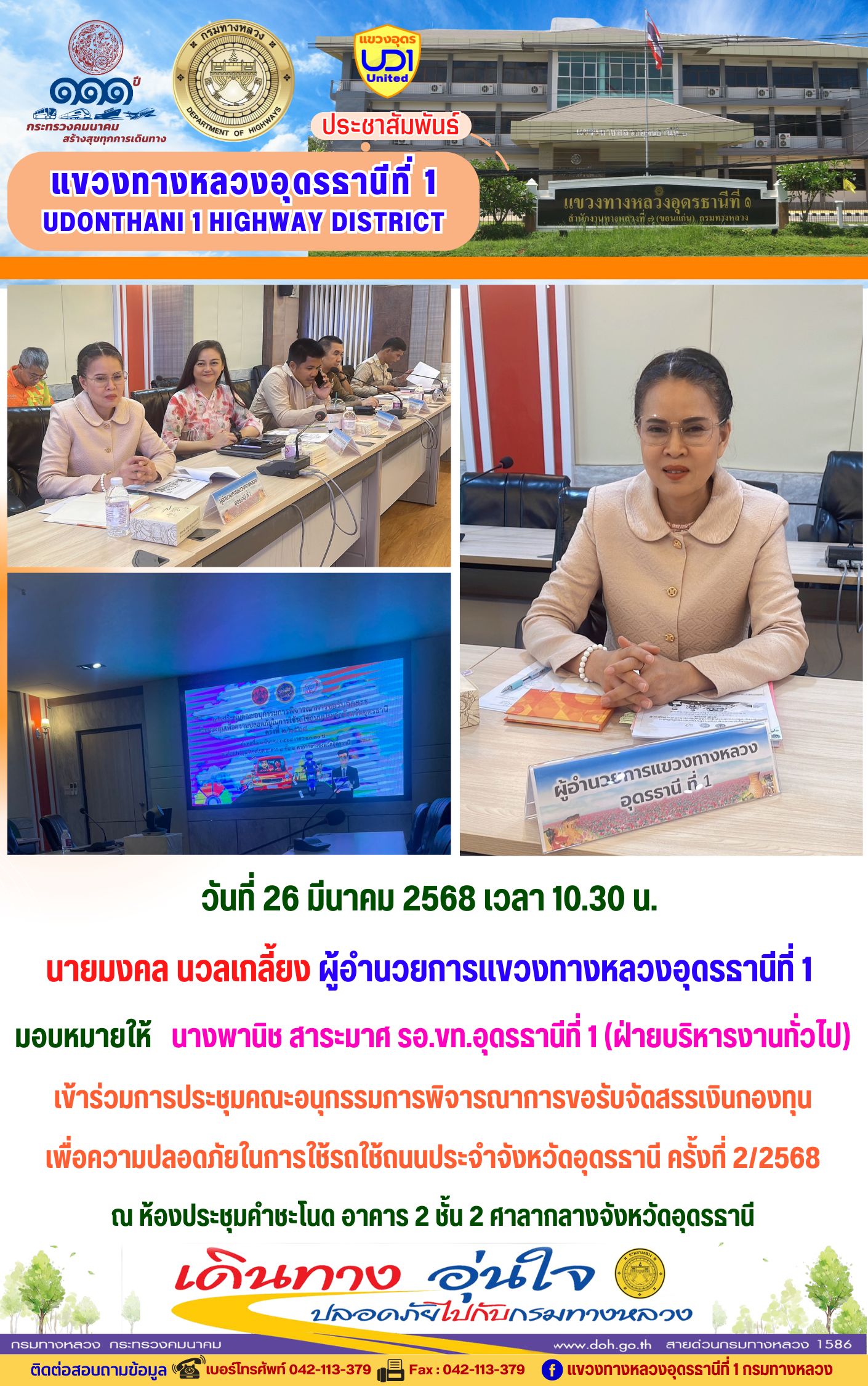 เข้าร่วมการประชุมคณะอนุกรรมการพิจารณาการขอรับจัดสรรเงินกองทุน เพื่อความปลอดภัยในการใช้รถใช้ถนนประจำจังหวัดอุดรธานี ครั้งที่ 2/2568