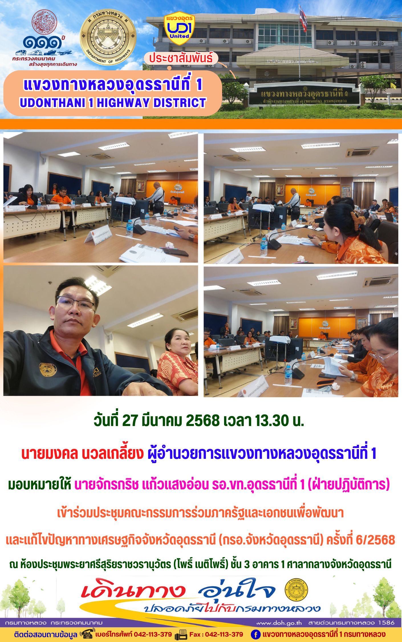 เข้าร่วมประชุมคณะกรรมการร่วมภาครัฐและเอกชนเพื่อพัฒนา และแก้ไขปัญหาทางเศรษฐกิจจังหวัดอุดรธานี (กรอ.จังหวัดอุดรธานี) ครั้งที่ 6/2568