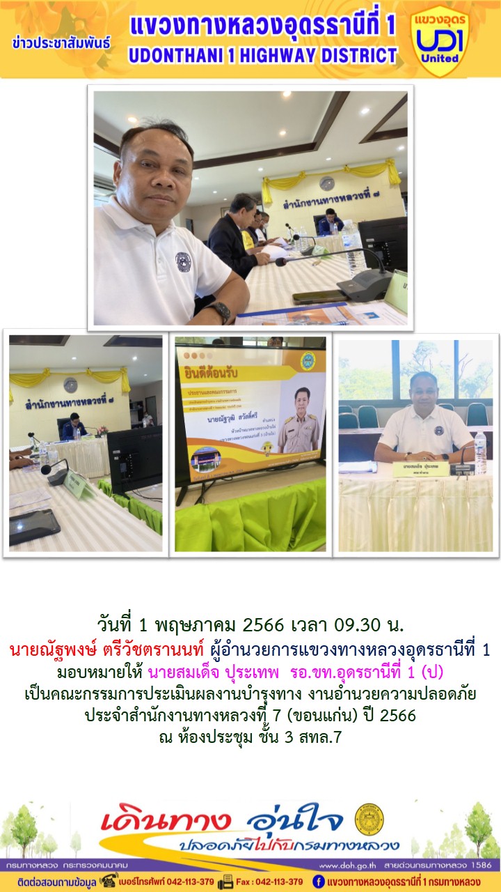 รอ.ขท. (ป) ร่วมเป็นคณะกรรมการประเมินผลงานบำรุงทาง งานอำนวยความปลอดภัย ประจำสำนักงานทางหลวงที่ 7 (ขอนแก่น) ปี 2566