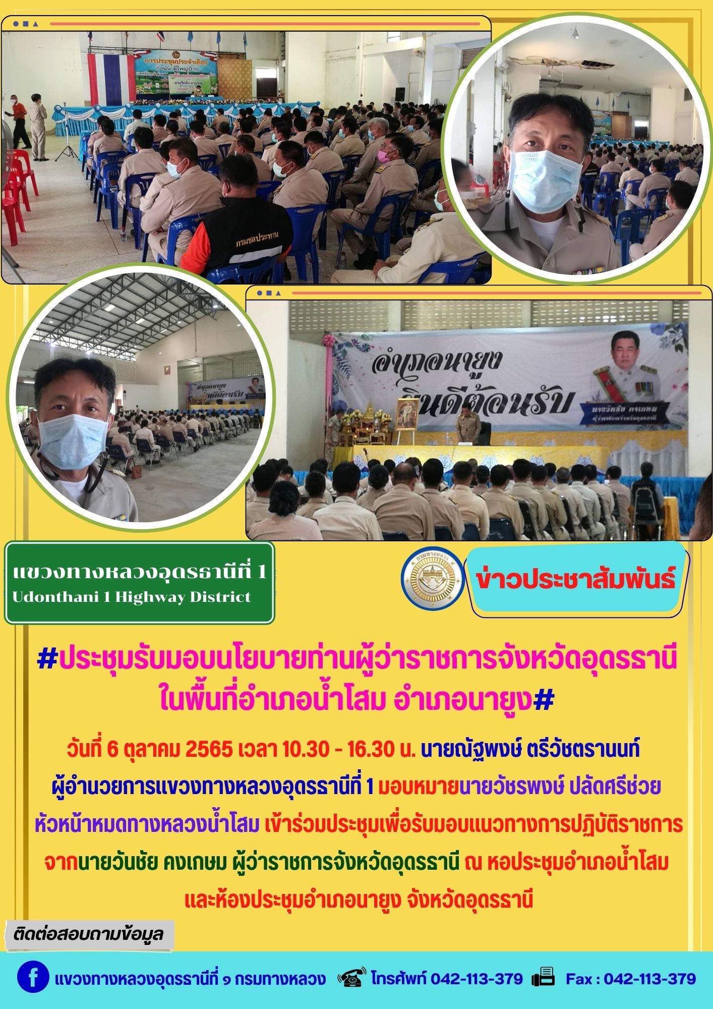 ลงพื้นที่สำรวจวามเสียหายของโครงสร้างทาง เพื่อประกอบการวางแผนการซ่อมบำรุงทางหลวง ทางหลวงหมายเลข 22 ตอน อุดรธานี-หนองขาม ตามนโยบายของอธิบดีกรมทางหลวง และรับฟังคำชี้แนะของประชาชน