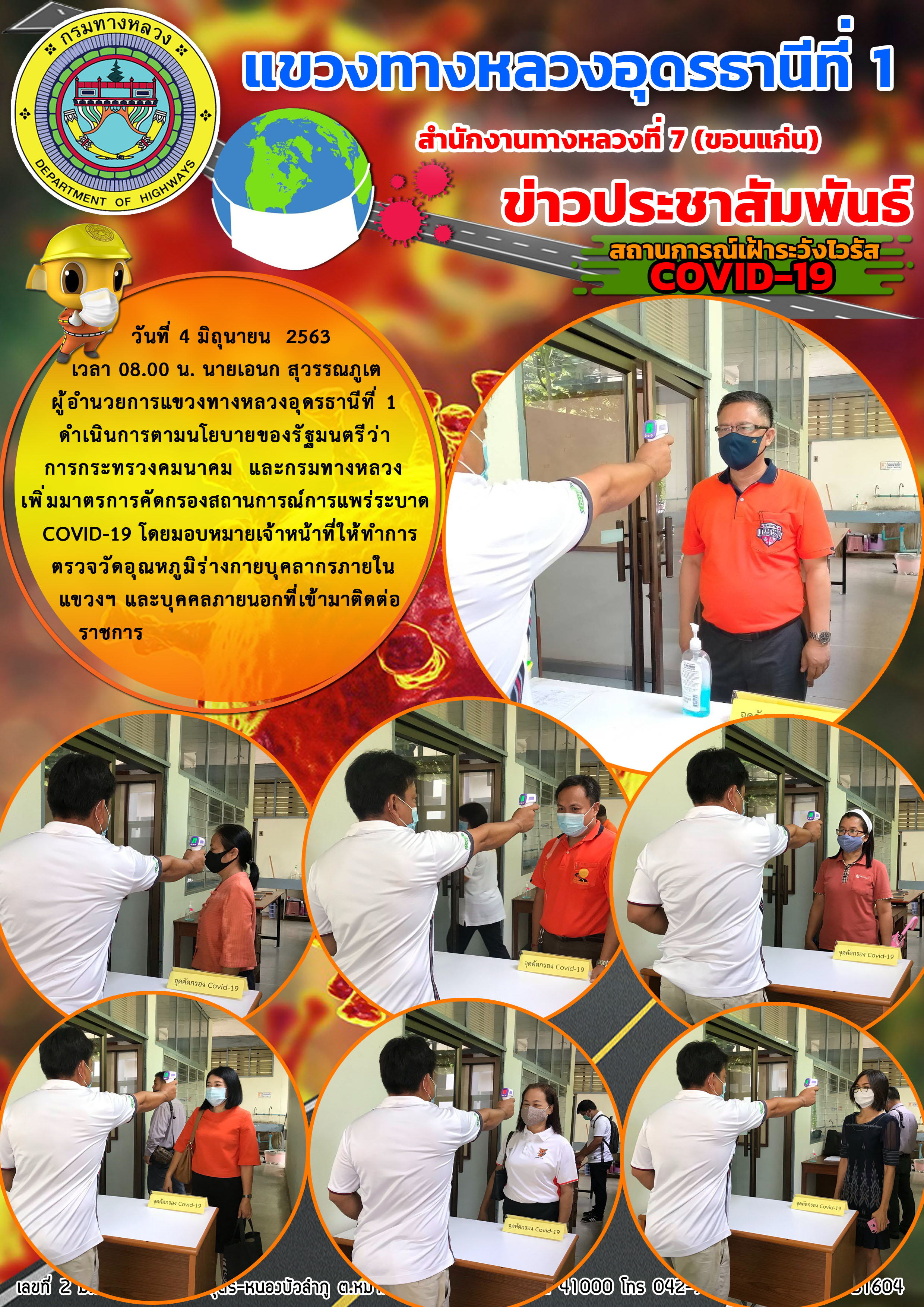 ตรวจเยี่ยม การปฏิบัติงานของเจ้าหน้าที่ตรวจคัดกรองผู้ที่เดินทางขาเข้าจังหวัดอุดรธานี