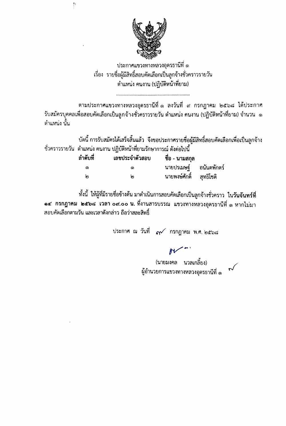 เรื่อง รายชื่อผู้มีสิทธิ์สอบคัดเลือกเป็นลูกจ้างชั่วคราวรายวัน ตำแหน่ง คนงาน (ปฏิบัติหน้าที่ยาม)