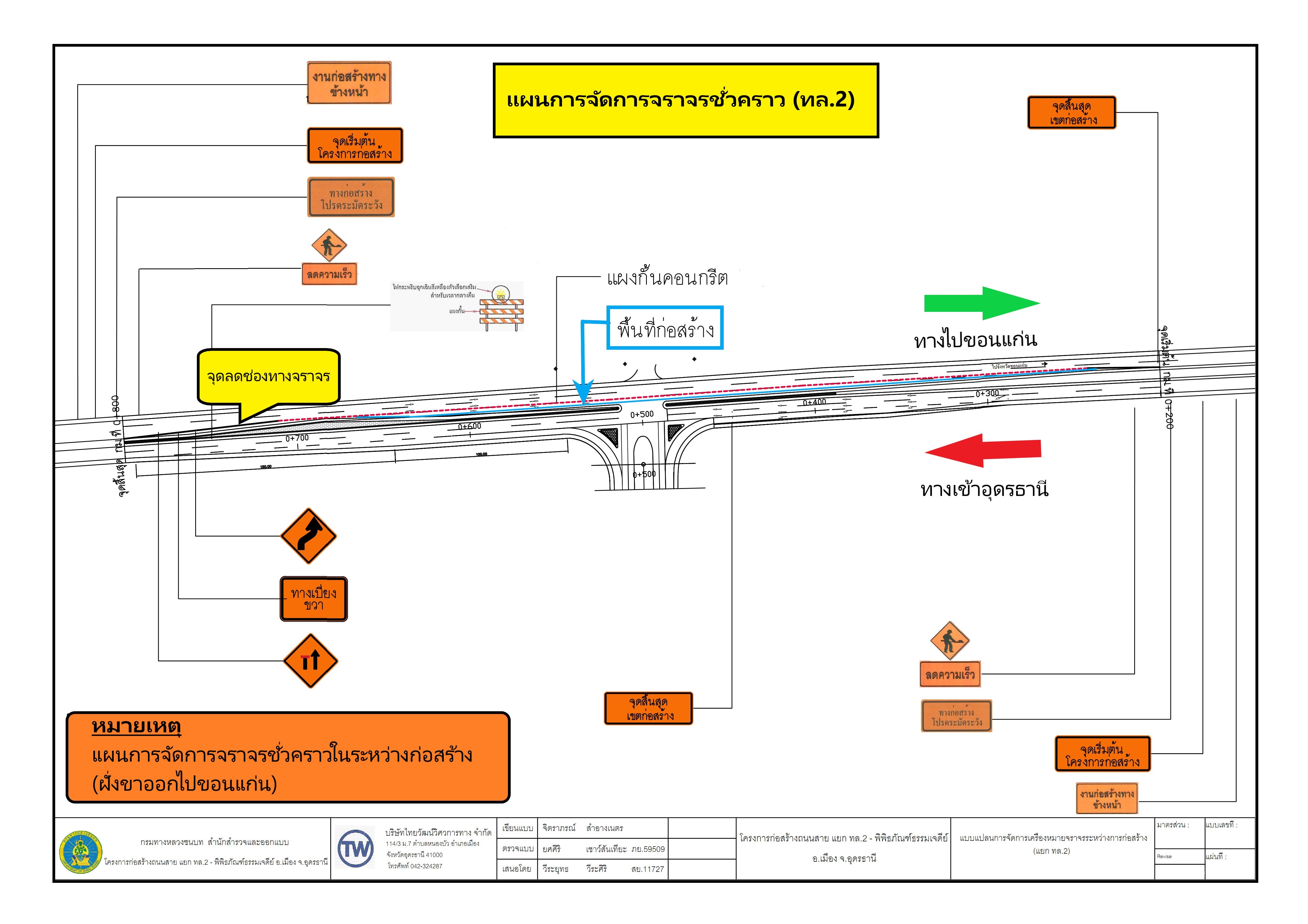 แจ้งขอเบี่ยงทางจราจรชั่วคราวทางแยกทางหลวงหมายเลข 2 ฝั่งขาออกไปขอนแก่น (โนนสะอาด-อุดรธานี) แยกวัดป่าบ้านตาด
