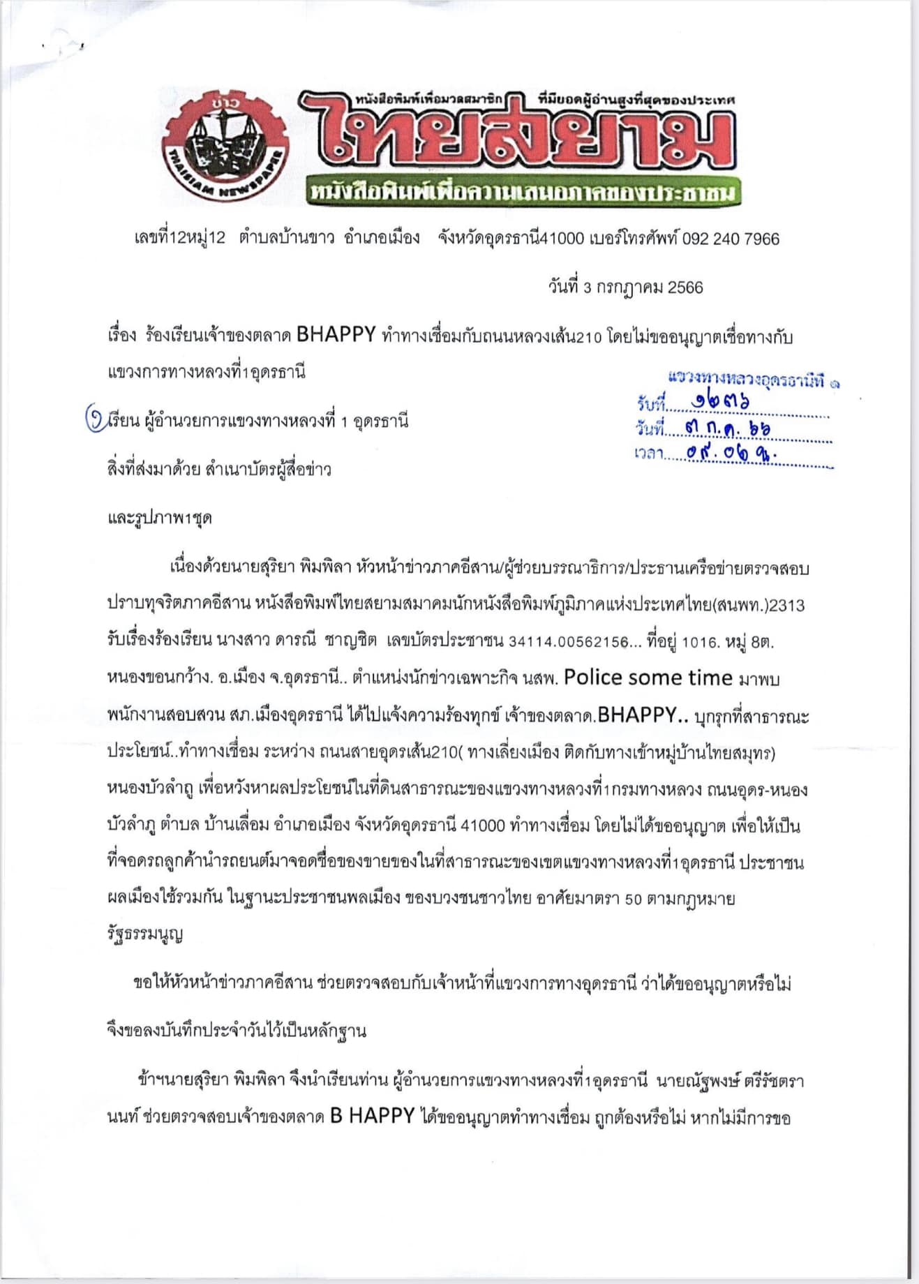 แต่ปรากฏว่า ผู้ประกอบการได้ก่อสร้างผิดรูปแบบโดยเทคอนกรีตเต็มพื้นที่ ซึ่งหมวดทางหลวงนิคมสงเคราะห์ได้แจ้งให้ผู้ประกอบการตลาด BHAPPY ทำการรื้อย้ายออกและแก้ไขให้ถูกต้อง ตามรูปแบบที่ได้รับอนุญาต