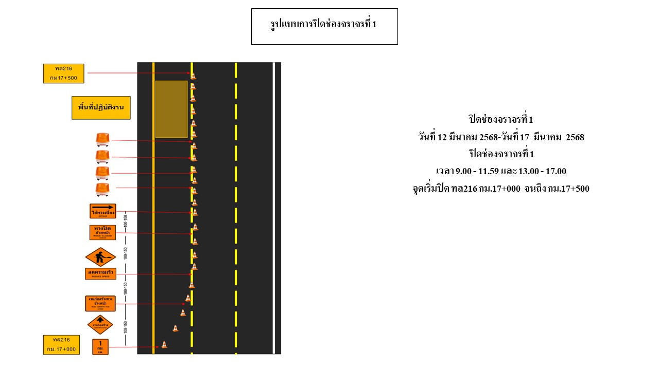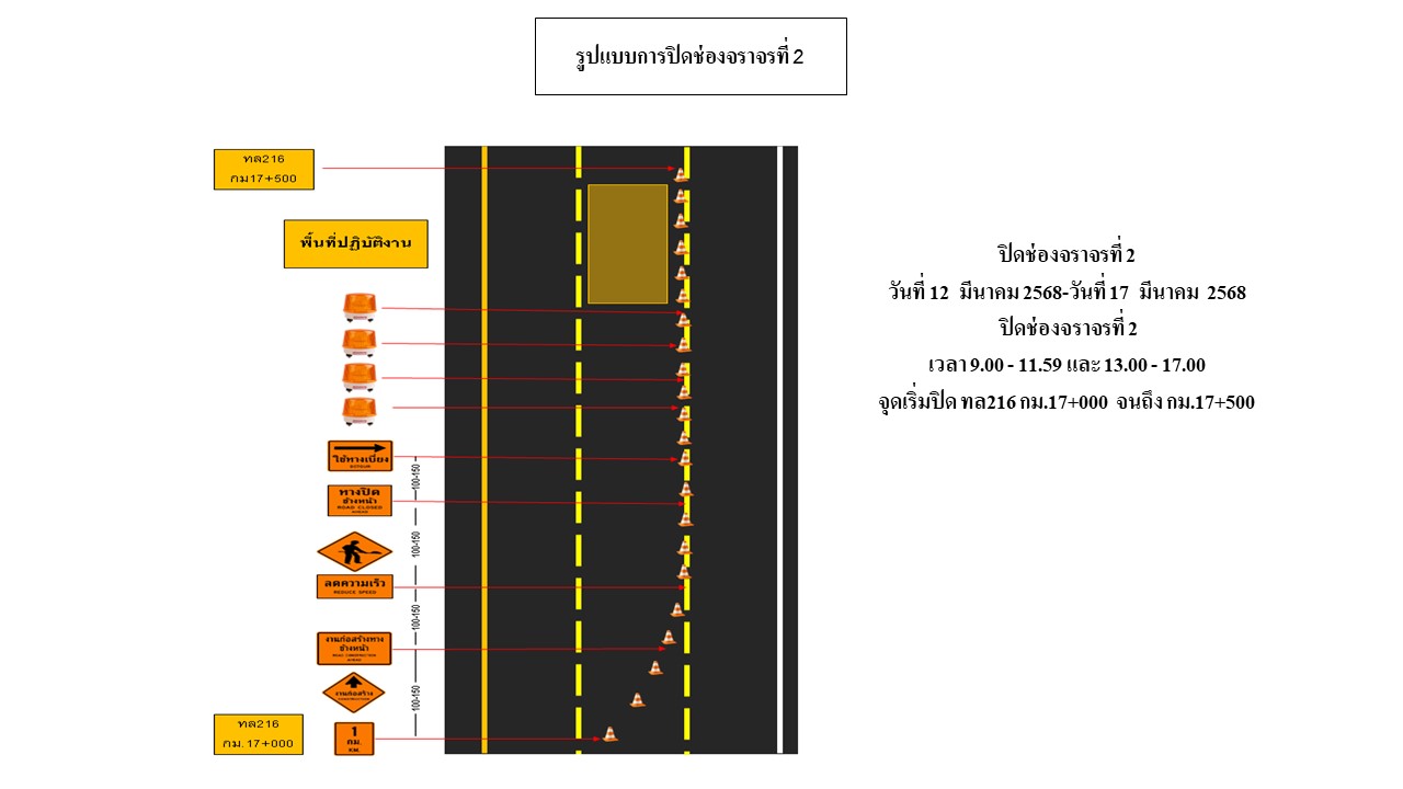 จะดำเนินการปิดช่องจราจร 2 ช่อง เพื่อทำการติดตั้งอุปกรณ์บนพื้นผิวถนน