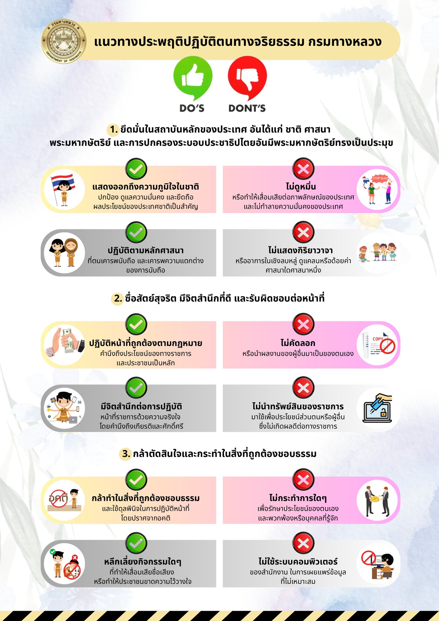 แนวทางประพฤติปฎิบัติตนทางจริยธรรม กรมทางหลวง